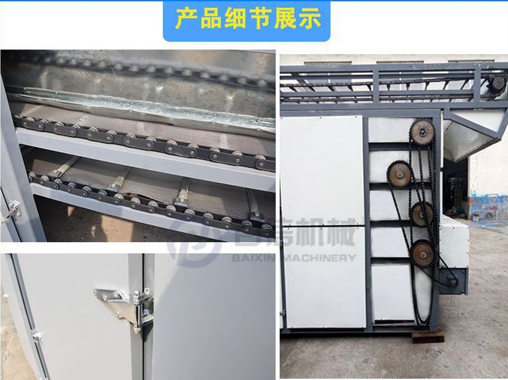 3、所烘物品采用上層翻轉(zhuǎn)翻動自然落到下層,使所烘物品均勻受熱,克服了以前人手?jǐn)嚢杷斐傻奈锲纷冃危止?jié)省了人力。