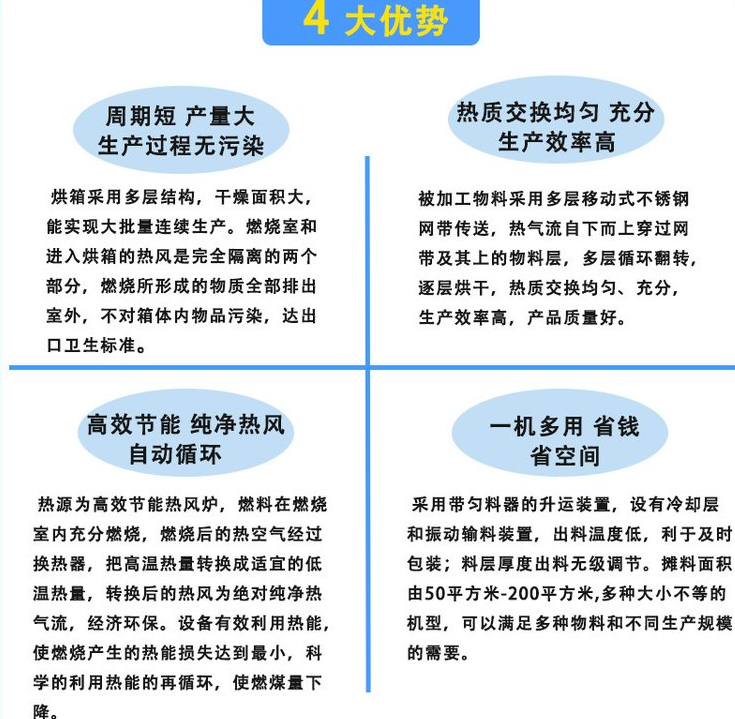 1、周期短,產(chǎn)量大,干燥過程無污染。